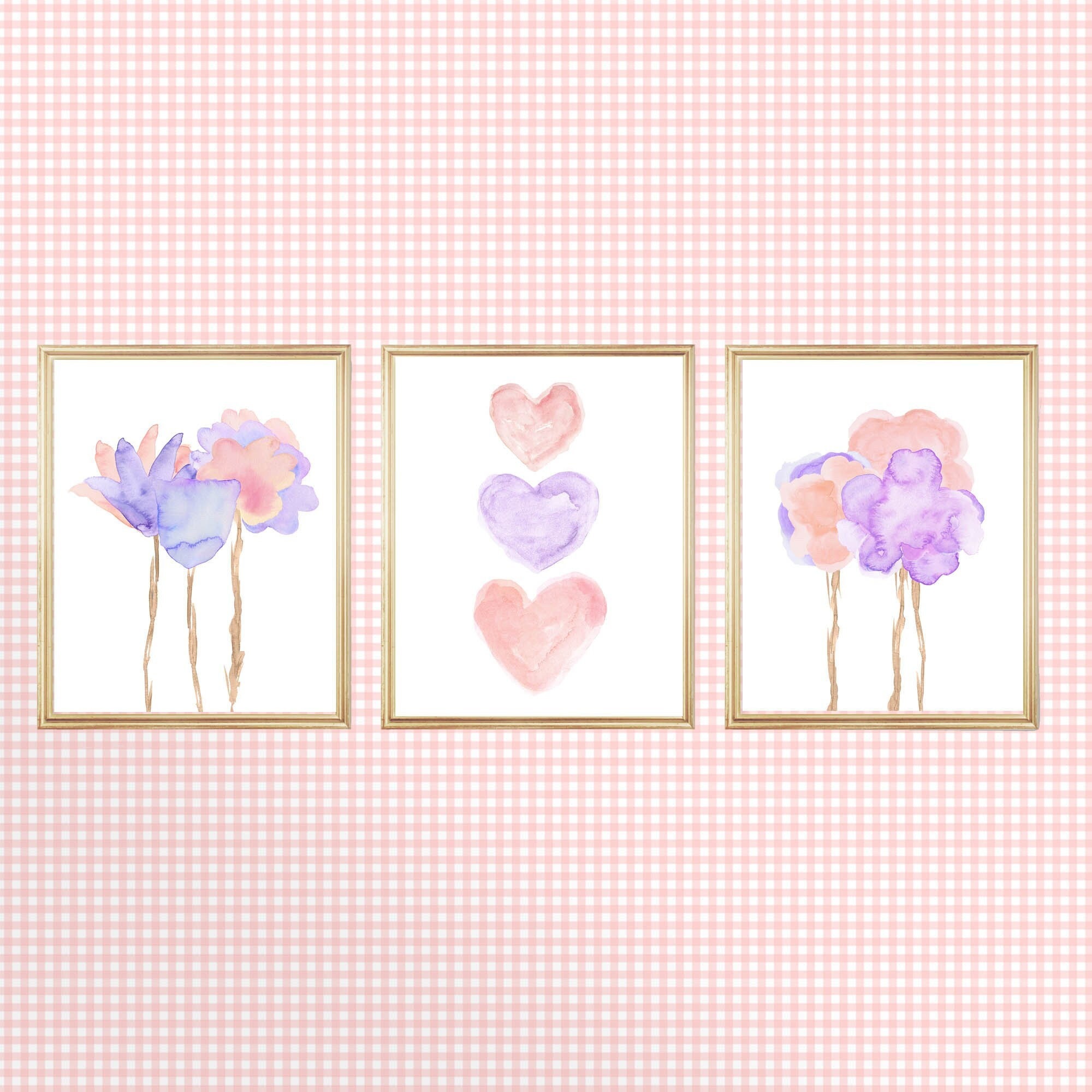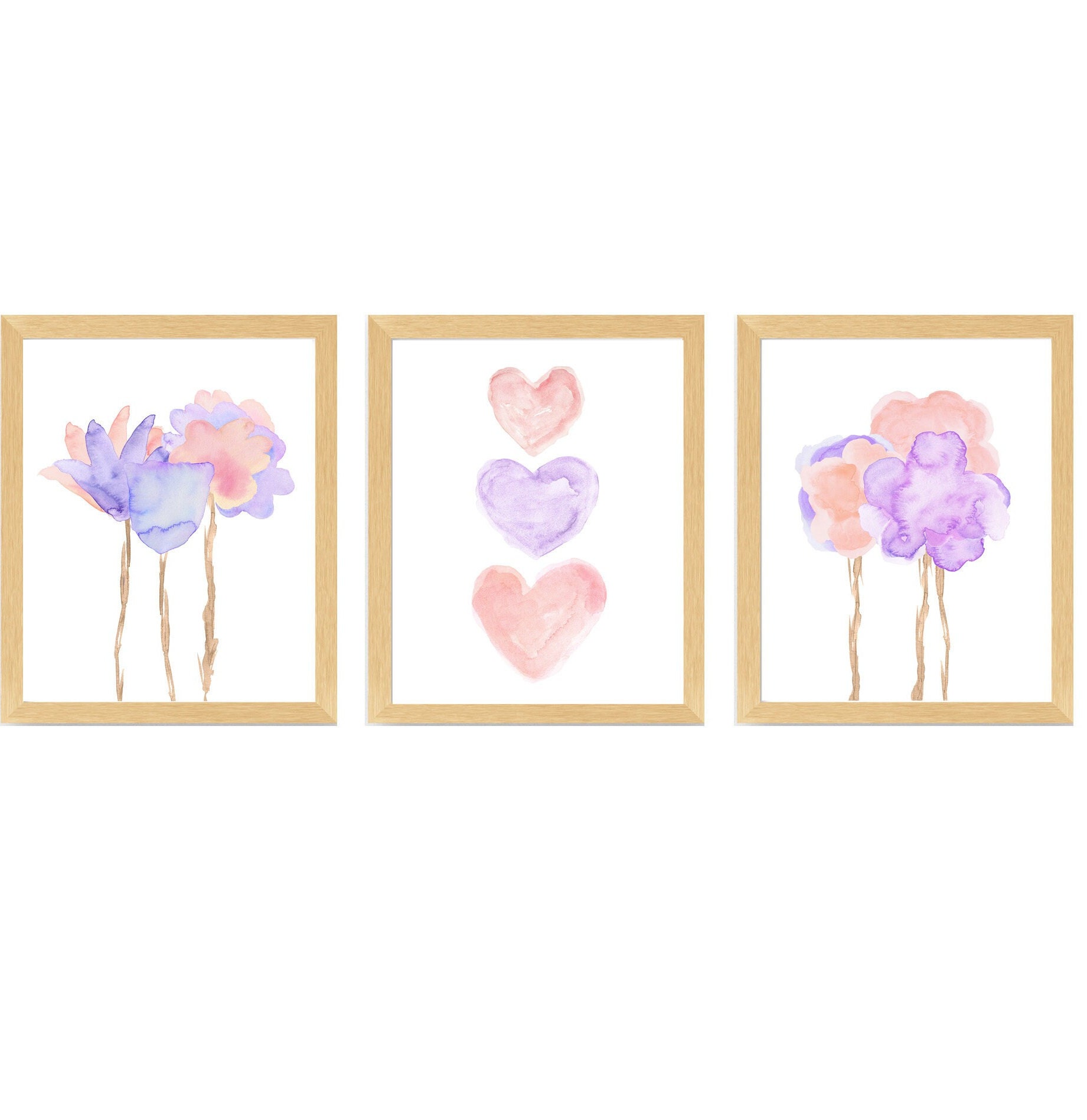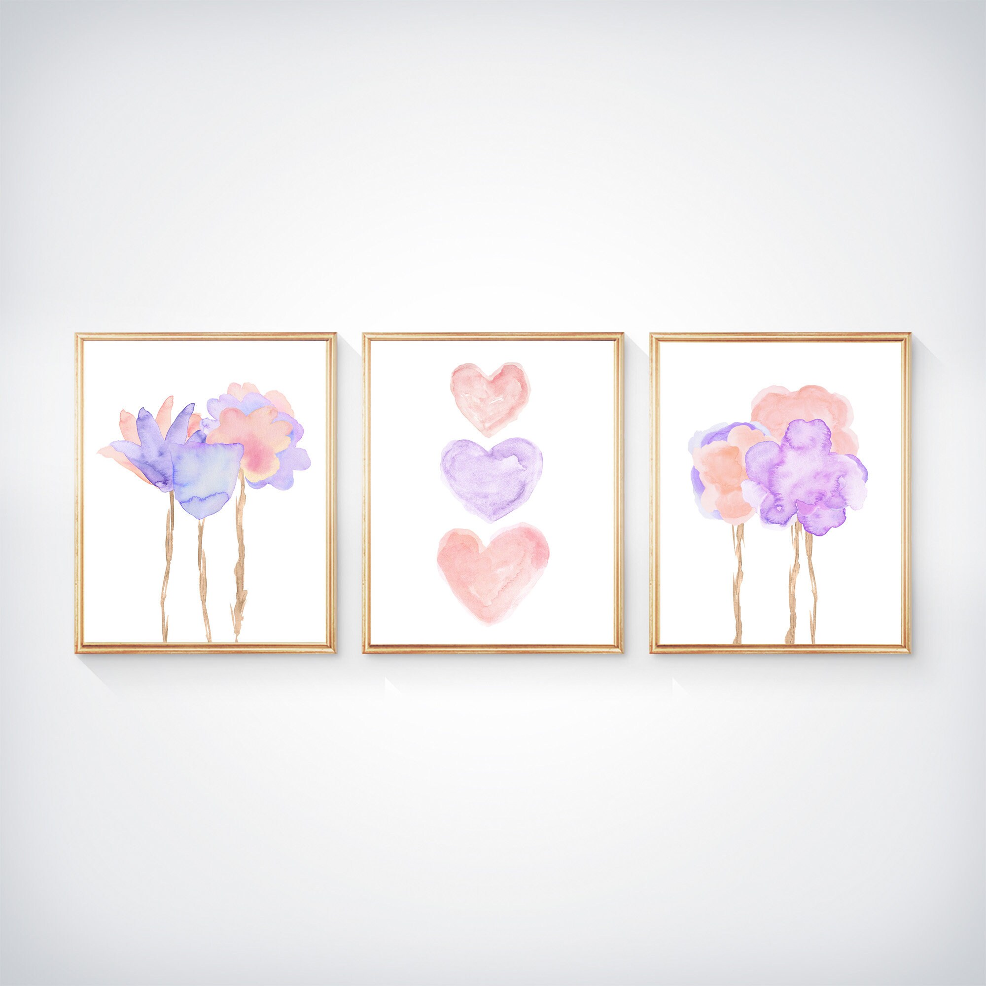 A set of two or three floral art prints composed of a cheerful bouquets of pale lavender, purple and blush watercolor flowers. Recreated as prints from my original paintings.