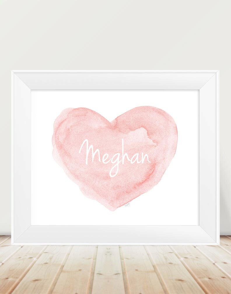 Personalize my most popular watercolor heart print with your special name. An art print recreated from my original watercolor painting.