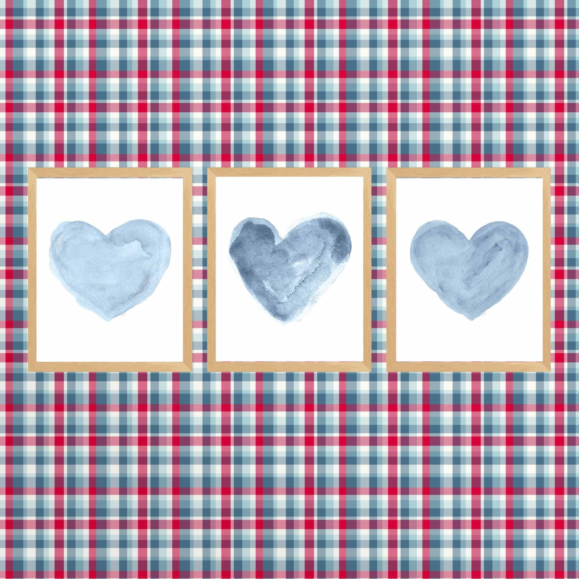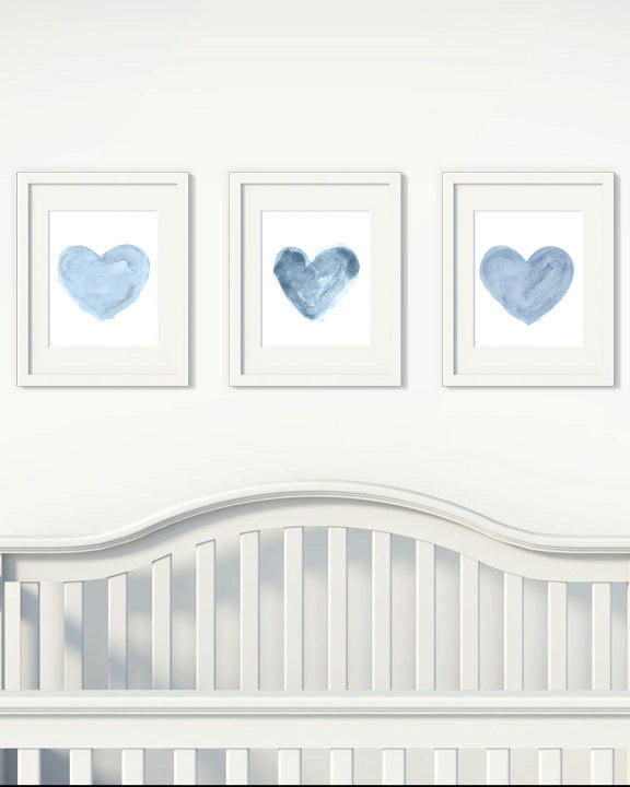 A set of three calm and relaxing chambray blue watercolor art prints. Soft shades of denim blues swirl throughout. Each print is recreated from my original watercolor painting.