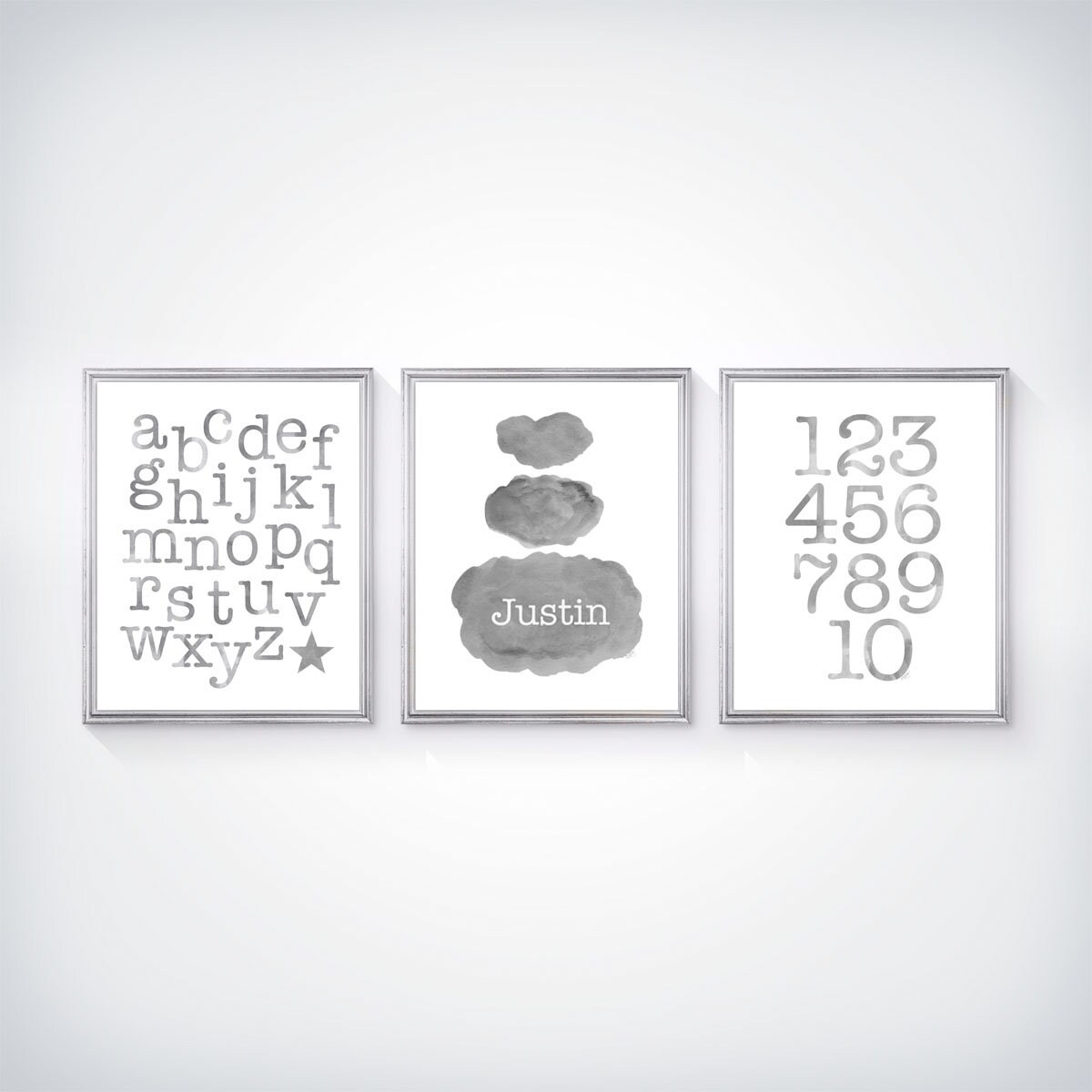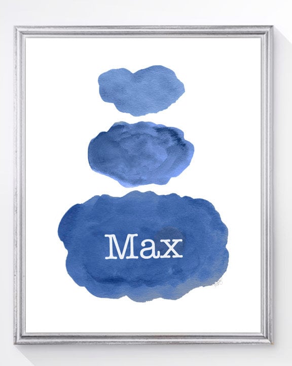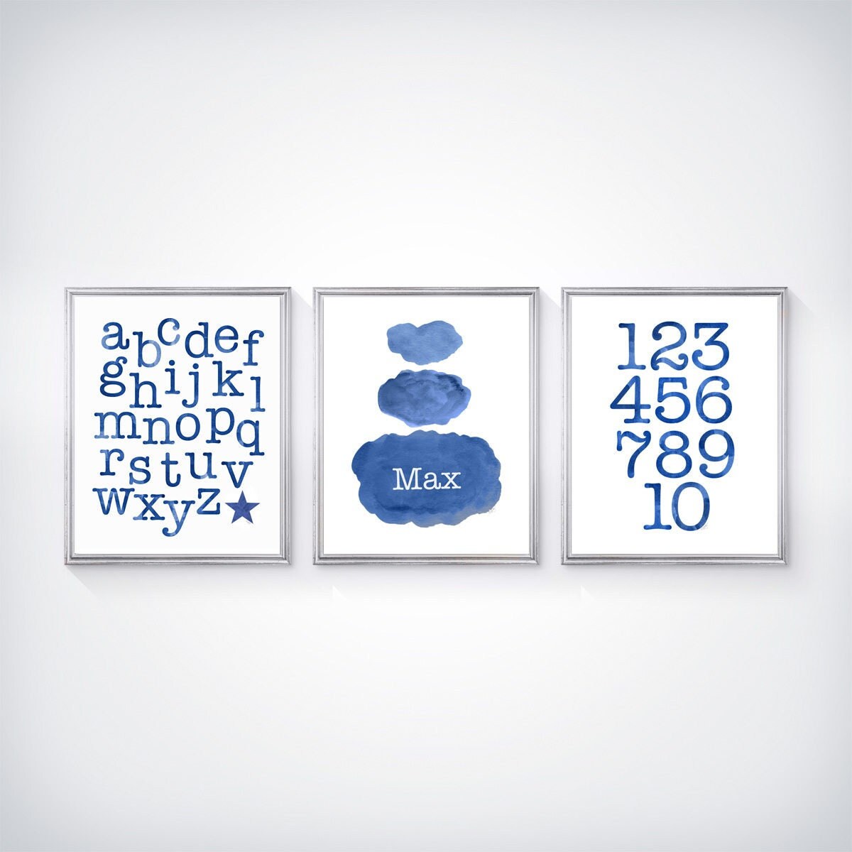 Personalize my navy cloud print with your boy's name. A set of 3 - 8x10 watercolor prints each is created from my original watercolor paintings. A sweet way to learn! Just leave the name in the 'notes to seller' at checkout.