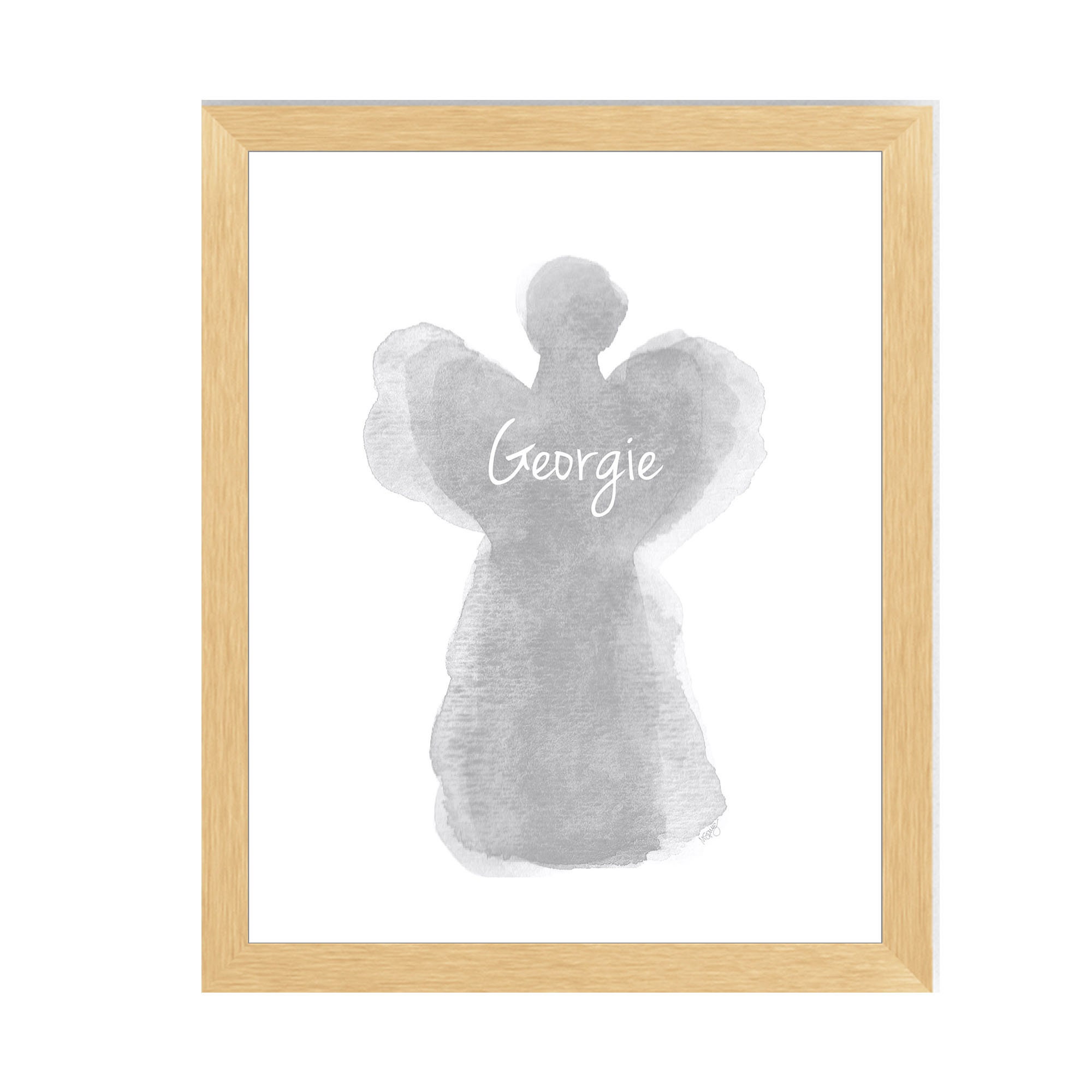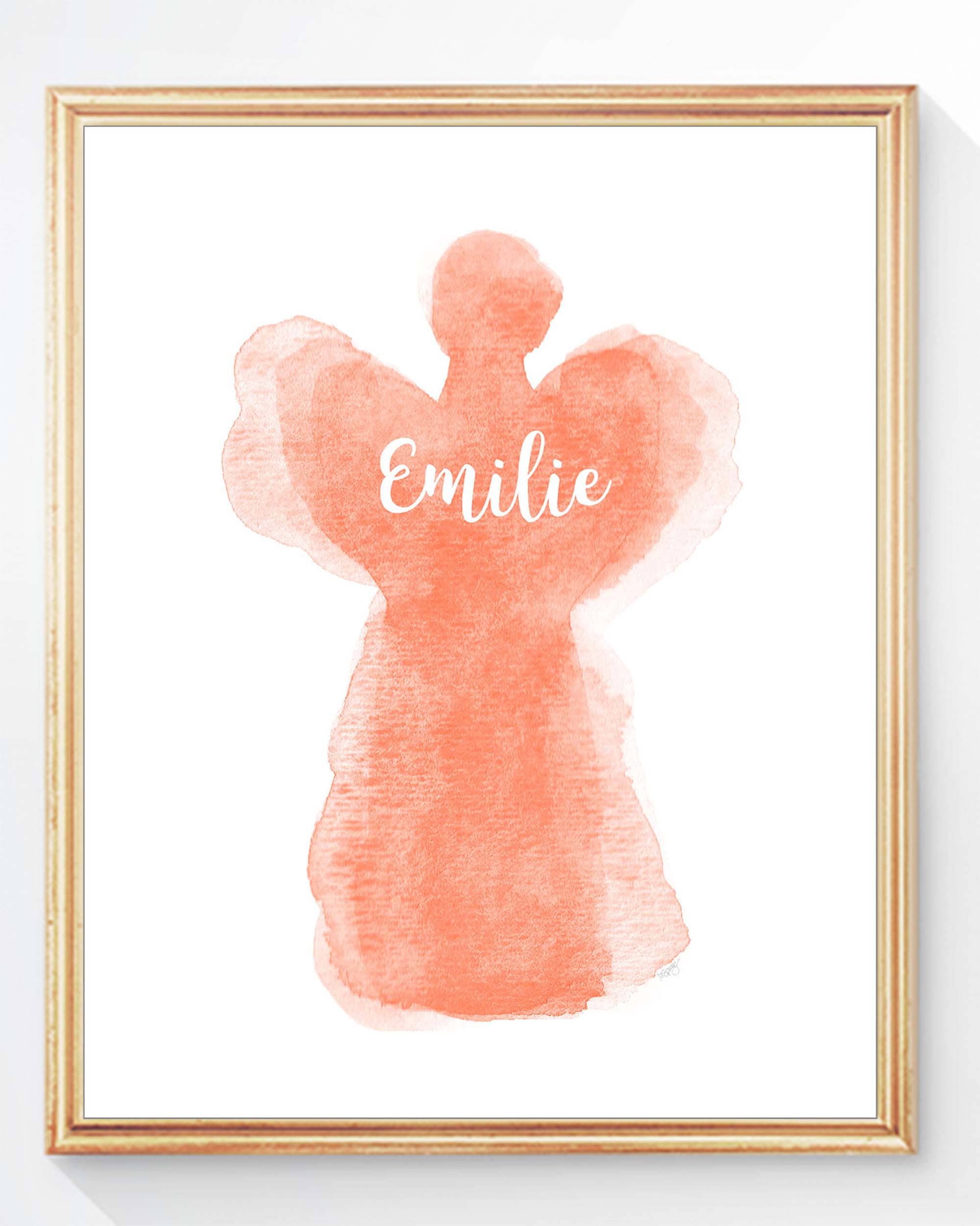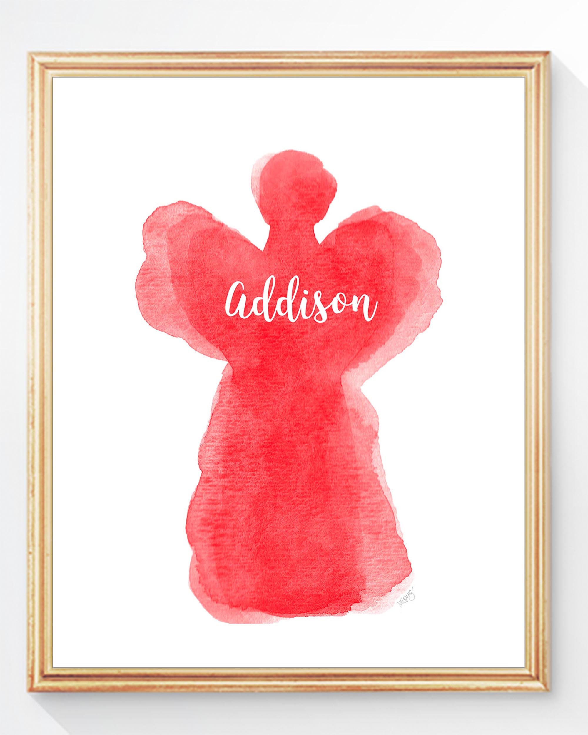 Customized my angel watercolor with your very special name. A 5x7 or 8x10 art print created from my original watercolor painting. Available in 11 colors.