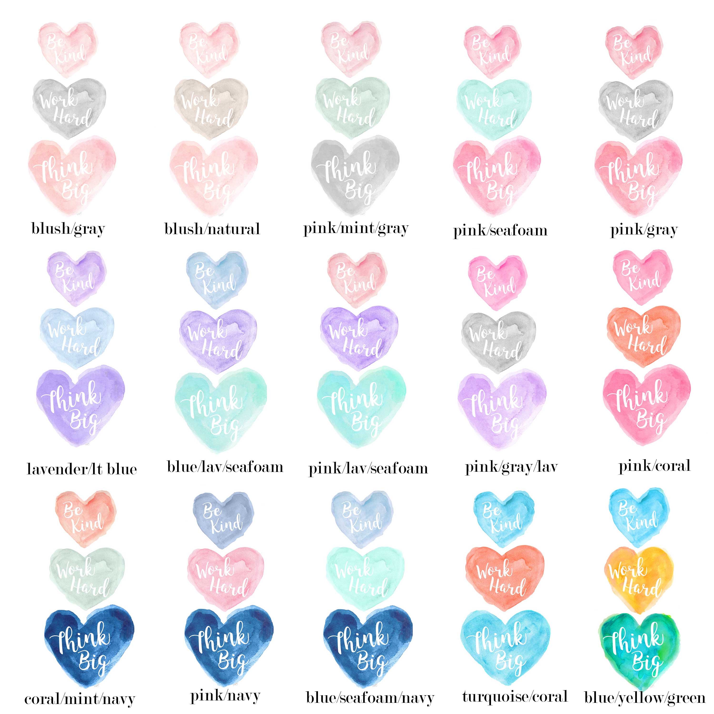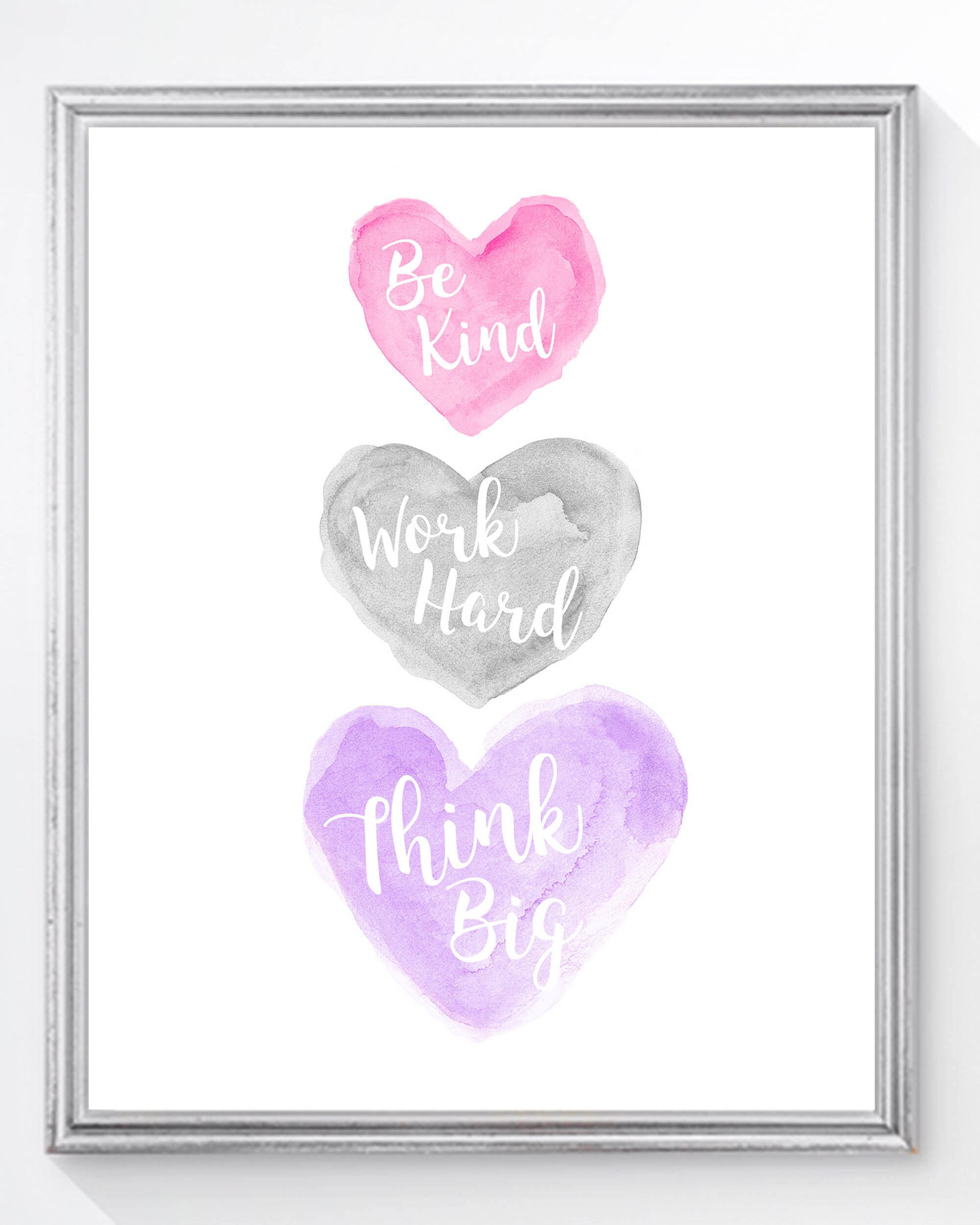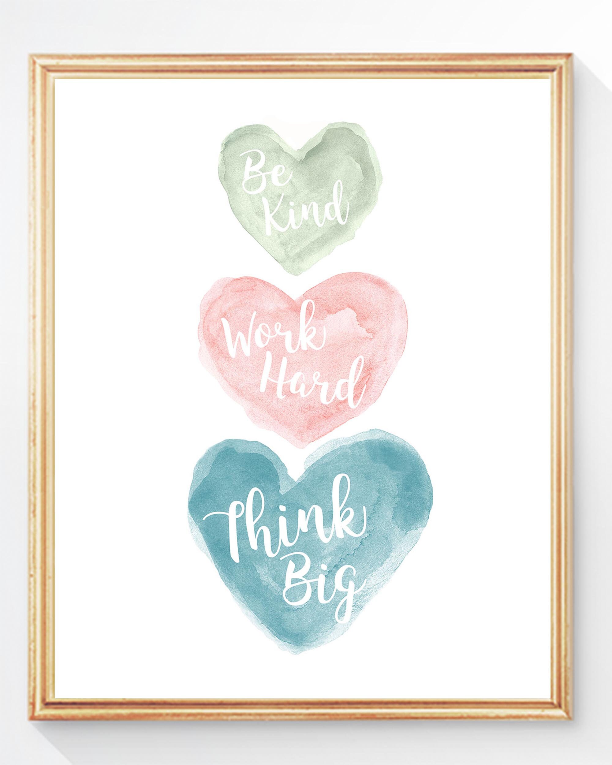 Think Big, Work Hard, and Be Kind. A creative reminder of the big picture ahead. An inspirational art print recreated from my original watercolor paintings.